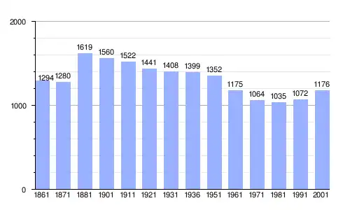 | Gráfica de evolución demográfica de Castelletto Stura entre 1861 y 2001 |