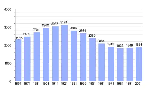 | Gráfica de evolución demográfica de Castelletto d'Orba entre 1861 y 2001 |