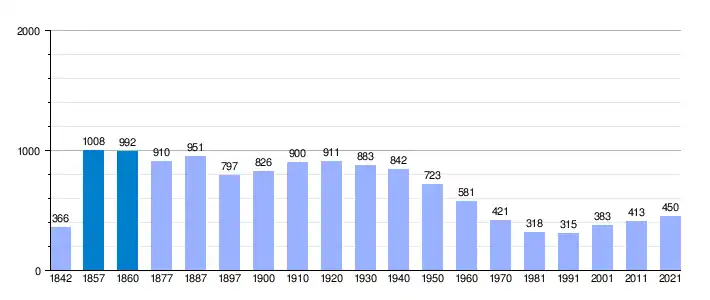 | Gráfica de evolución demográfica de Castellfullit del Boix[5] entre 1842 y 2021 |