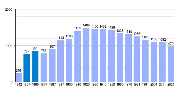 | Gráfica de evolución demográfica de Castellserás[4] entre 1842 y 2021 |