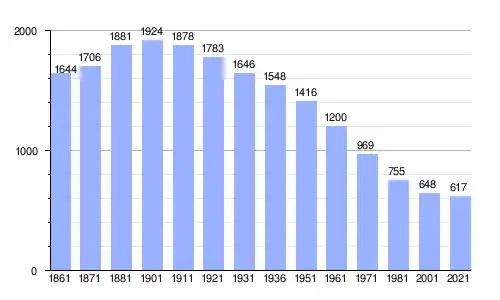 | Gráfica de evolución demográfica de Castelnuovo Bormida entre 1861 y 2021 |