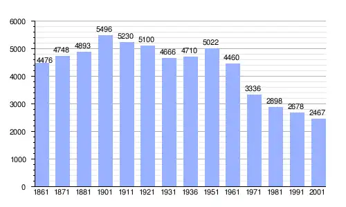 | Gráfica de evolución demográfica de Castelnuovo di Val di Cecina entre 1861 y 2001 |