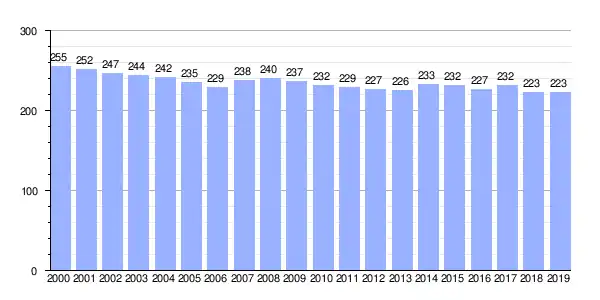 | Gráfica de evolución demográfica de Castelo entre 2000 y 2019 |