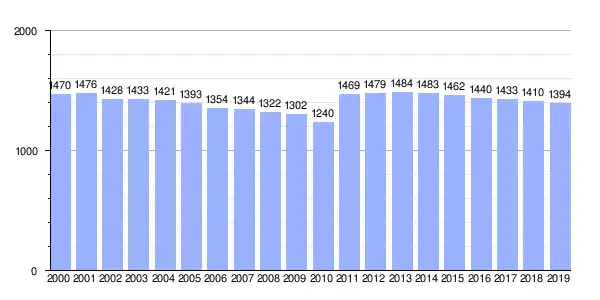 Gráfica de evolución demográfica de Castiñeiras (parroquia) entre 2000 y 2019
