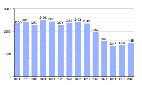 | Gráfica de evolución demográfica de Castiglione Chiavarese entre 1861 y 2001 |