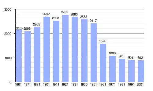 | Gráfica de evolución demográfica de Castiglione a Casauria entre 1861 y 2001 |