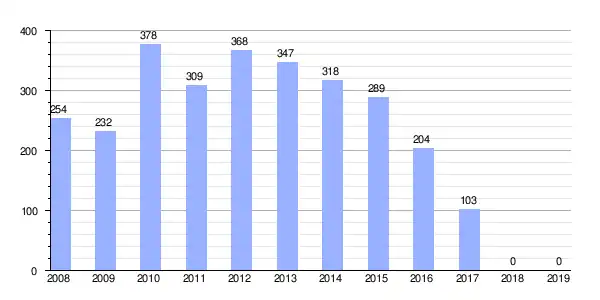 | Gráfica de evolución demográfica de Castilleja del Campo[5] entre 1842 y 2021 |
