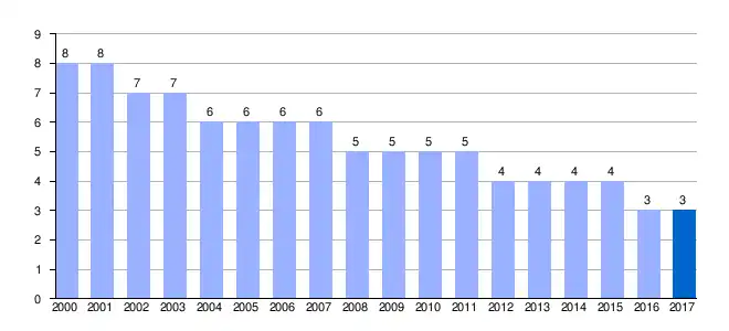 | Gráfica de evolución demográfica de Castillejo de Evans[3] entre 2000 y 2017 |