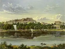 El castillo fue construido entre 1597 y 1618, en el emplazamiento de un pabellón de caza. Posteriormente fue reconstruido en varias oportunidades, sufriendo cambios estilísticos en su transformación a residencia de la familia real. Después de la Segunda Guerra Mundial, el castillo fue saqueado y quemado por soldados del Ejército Rojo.[1]
