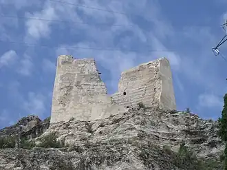 El castillo es en realidad un complejo de múltiples torres sobre una altura que domina la localidad. Cinco torres forman un complejo en una cresta con una torre adicional en una cresta vecina.[13] El sistema estaría complementado con torres exteriores, de las que se han llegado a identificar hasta cuatro adicionales circundando la población[2] con una undécima torre apodada el Alcázar en un desfiladero próximo.[13][15]