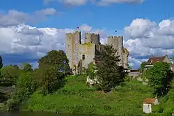 Esta torre circular fue transformada y fortificada bajo Luis II. Se accede por unos escalones desde el patio de la escuela de música (antigua escuela de niñas). Una escalera de caracol permite acceder a los pisos superiores y, en particular, al camino de ronda de la muralla. Era en origen una torre de defensa que cerraba el recinto exterior al sur, y también era un interesante punto de observación para los habitantes del pueblo. La sala del primer piso, que habría sido utilizada como prisión, conserva anillas empotradas en la pared. El campanario con su reloj fue construido sobre su plataforma superior y data del siglo XVIII.
