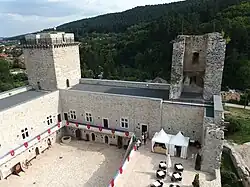 El castillo tuvo su apogeo durante el reinado de Luis I (Luis el Grande). Su importancia radicaba en que estaba cerca de la carretera que llevaba a Polonia (la madre de Luis el Grande, Isabel Łokietek, fue una princesa polaca, Luis se convirtió en rey de Polonia en 1370). El rey reconstruyó el castillo y lo modernizó. Rodeado por varios muros, el castillo interior fue construido alrededor de un patio rectangular, y tenía cuatro torres, una en cada esquina. En el primer piso estaban los almacenes y en el segundo piso estaban las habitaciones y el Salón de los Caballeros, que era de 25 metros de largo y 13 metros de ancho. La modernización del castillo fue terminada bajo el reinado de la hija de Luis María. El castillo estaba rodeado por un foso de cuatro metros de profundidad.