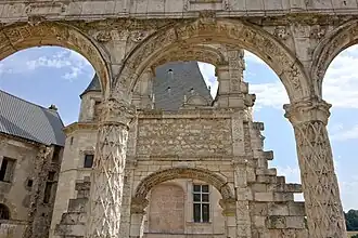 Fue en esas condiciones que los Amboise, arzobispos de Ruan, harán a partir de esas ruinas el primer palacio del Renacimiento en Francia.