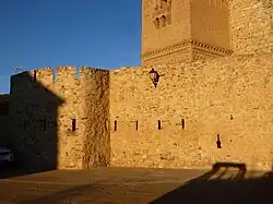 En el interior del recinto se encuentra la iglesia de San Pedro Apóstol construida en el siglo XVI para sustituir a construcciones preexistentes. Destaca la torre puerta[3] de origen militar defensivo que es el elemento más destacado del conjunto y que formó parte del catálogo de 156 monumentos que el Gobierno de Aragón presentó a la Unesco para la Declaración del arte mudéjar aragonés como Patrimonio de la Humanidad. Este reconocimiento fue otorgado por la Unesco en su reunión de 2001 celebrada en Helsinki.