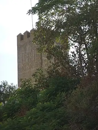 Reconstrucción de uno de los torreones alzado sobre sus restos. El edificio también aparecía en el antiguo escudo de la ciudad | ||