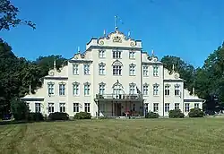 Después de convertirse en propietario de la finca en 1834, Posse hizo derribar la mansión original para su nueva construcción, que fue completada en 1860. La parte central del castillo tiene cuatro pisos de alto, y cada parte alrededor es de un nivel inferior, terminando en un pabellón de una sola planta en cada lado, y el conjunto fue rodeado originalmente por un parque de estilo romántico. Las secciones escalonadas, junto con el frontón en el bloque central, están decorados con volutas, y el frontón también está decorado con el escudo de armas de los Posse. La sala más impresionante del edificio es una sala de música que se extiende verticalmente por dos pisos y está coronada con una cúpula de vidrio.