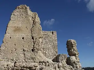 El recinto interior se situaba en la parte más elevada del cerro, con una torre al sur y otras al este construidas con tapial. En la parte más alta se sitúa la torre del homenaje, de planta rectangular, tres plantas[2] y terraza almenada, toda ella construida en mampostería.