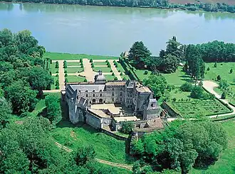 El palacio de Vayres (en francés: Château de Vayres) es un château francés de origen medieval situado a orillas del río Dordoña, que domina, a unos 25 km del centro de Burdeos, en la comuna de Vayres, departamento de Gironda en la región de Nueva Aquitania.[2] El palacio ha experimentado una serie de destrucciones y reconstrucciones con tres etapas principales: en el siglo XIV, presencia de una fortaleza rodeada de zanjas y dotada de defensas; reconstrucción en el siglo XVI que le dio un aspecto más residencial (fachadas con decoraciones rebuscadas, acondicionamiento de interiores) y últimos grandes acondicionamientos en el siglo XVII (fachada monumental, gran escalera). Su historia está vinculada a la de la ciudad de Burdeos que contribuyó a proteger durante mucho tiempo. Perteneció a la familia de Albret y fue heredado por Enrique IV, que lo vendió a una ilustre familia de Burdeos, los Gourgue. El palacio fue clasificado en el título de los monumentos históricos en 2001 y 2003.[1]