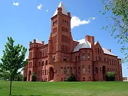 Arquitecto E.B. Gregory diseñó y colocó la piedra angular del edificio principal de la universidad, que se construiría con piedra gris del área de Coal Creek. Después de retrasos en la construcción causados por la falta de fondos, Mayham contrató al arquitecto de Nueva York Stanford White para terminar el diseño y supervisar la construcción. El blanco cambio un elemento de diseño principal, la piedra, a una arenisca roja del área de Red Rocks/Manitou. El diseño de White se completó en 1893: fachada de 160 pies, profundidad de 80 pies, tres pisos de altura, con una torre distintiva de 175 pies de altura. El estilo arquitectónico del edificio es un excelente ejemplo del Románico Richardsoniano.