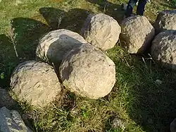 La multitud de bolaños (proyectiles) aparecidos son pruebas fiables del asedio que sufrió la fortaleza. Los hay de diversos tamaños; desde 50 hasta 18 cm de diámetro, y aún mayores. Presentan diversos niveles de trabajado de la piedra, unos toscamente labrados (a bisel) procurando la forma esférica, empleados por ingenios de asedio con un mecanismo de contrapeso (fundíbulos o impuestos).