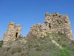 Las torres del primer recinto es la parte mejor conservada y más visible de todo el castillo. De sus dos torres en pie, destaca la torre Oeste, la cual alcanza los 9 metros de altura, apreciándose aún las tres plantas que hubo de tener, a pesar de los escombros apilados en la primera planta al derrumbarse el techo de las plantas superiores.