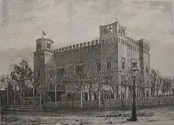 Construido con ladrillo visto y hierro laminado, es un edificio en forma de castillo coronado de almenas. Es de planta prácticamente cuadrada, con cuatro torres en los ángulos y pasadizos perimetrales que circulan entre una doble fachada. En su innovadora estructura diáfana de ladrillo visto y armazón de hierro también a la vista, se adelanta unos años a la propuesta similar que hará Hendrik Petrus Berlage en su proyecto para la Bolsa de Ámsterdam.