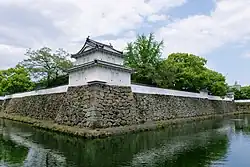 Los sucesivos kuruwa y maru estaban divididos entre sí por fosos, diques, muros de menor tamaño construidos encima de las bases de piedra, llamadas dobei (土塀?),[29] y las murallas de piedra, llamadas ishigaki (石垣?).[30]