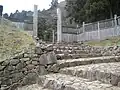 - Munamon (棟門?).- Los dos principales pilares estaban cubiertos por un techado similar a la koraimon, pero sin el techo extra.
