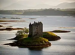 Los castillos en Escocia surgieron como consecuencia de la centralización de la autoridad real en el siglo XII.[29] Antes de la década de 1120, hay muy poca evidencia de la existencia de castillos en Escocia, que había permanecido políticamente menos centralizado que en Inglaterra con el norte todavía gobernado por los reyes de Noruega.[Tab. 1] David I de Escocia pasó un tiempo en la corte de Enrique I en el sur, hasta que se convirtió en el conde de Huntingdon, y volvió a Escocia con la intención de extender el poder real en todo el país y la modernización de la tecnología militar de Escocia, incluyendo la introducción de castillos.[30] El rey escocés alentó a los nobles normandos y franceses a establecerse en Escocia, introduciendo de un modo feudal la tenencia de tierras y el uso de castillos como una forma de controlar las tierras bajas impugnadas.[29][Tab. 2] El sistema de gobierno cuasi-independiente de Galloway, que se había resistido a la regla de David y sus predecesores, era un enfoque particular para esta colonización.[31] El tamaño de estos castillos escoceses, construcciones principalmente de madera tipo Mota y Bailey (mota castral), variaban considerablemente de diseños grandes, tales como el Bass of Inverurie, a los castillos más pequeños como Balmaclellan.[Tab. 3] Como ha sugerido el historiador Lise Hull, la creación de castillos en Escocia «tenía que ver menos que con la conquista» y más que ver con «el establecimiento de un sistema de gobierno».[32]