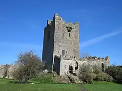 La invasión normanda de Irlanda inició entre 1166 y 1171, bajo el primer Richard de Clare y Henry II de Inglaterra, con la ocupación del sur y el este de Irlanda por un número de barones anglo-normandos.[Mc. 3] El rápido éxito normando dependió las ventajas económicas y militares, con castillos que les permitan controlar los territorios recién conquistados.[35] Los nuevos señores rápidamente construyeron castillos para proteger sus posesiones, muchas de estas construcciones eran Mota y Bailey (mota castral); en Louth al menos 23 de ellos fueron construidos.[36] Sigue siendo incierto cuántos castillos ringwork fueron construidos en Irlanda por los anglo-normandos.[Mc. 4] Otros castillos, como el de Trim y el de Carrickfergus, fueron construidos en piedra, como los centros caput para los principales barones.[Mc. 5] Análisis de estos castillos de piedra sugieren que la construcción en piedra no era simplemente una decisión militar; de hecho, varios de los castillos contienen defectos defensivos graves.[Mc. 6] En cambio los diseños estaban destinados tanto para aumentar el prestigio de los propietarios de los barones y para proporcionar un espacio adecuado para el aparato administrativo de los nuevos territorios.[Mc. 7] A diferencia de Gales, los señores irlandeses no parecen haber construido sus propios castillos en número significativo durante la época.[37][Nota 5]