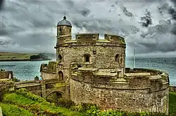 Enrique VIII se preocupó con la amenaza de la invasión francesa durante 1539 y estaba familiarizado con los diseños continentales más modernos.[Toy 8][74] Él respondió a la amenaza mediante la construcción de una famosa secuencia de fuertes, los llamó el Device Forts o castillos de Herician, a lo largo de la costa sur de Inglaterra diseñados específicamente para ser equipados con artillería de pólvora y para defenderse.[Low. 1][Toy 8] Estos fuertes todavía carecían de algunas de las características continentales más modernos, como bastiones en ángulo.[75] Cada fuerte tenía un diseño ligeramente diferente, pero como un grupo que comparte características comunes, con la fortificación formado en torno a una serie de lóbulos compactos, a menudo en una forma de trébol de cuatro hojas o de tres, diseñado para dar a los cañones un ángulo de 360 grados de disparo.[Toy 9] TLos fuertes estaban por lo general escalonados por etapas para permitir que las armas de fuego dispararan una sobre la otra y tenía características tales como rejillas de ventilación para dispersar el humo de la pólvora.[Low. 2][Toy 10] Es probable que muchos de los fuertes fueron también protegidos originalmente por baluartes de tierra, aunque estos no han sobrevivido.[74] Los fuertes resultantes han sido descritos por el historiador Christopher Duffy que tiene «un aire a la vez robusto y festivo, más bien como un pastel de bodas aplastado».[76]