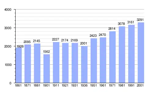 | Gráfica de evolución demográfica de Castione della Presolana entre 1861 y 2001 |