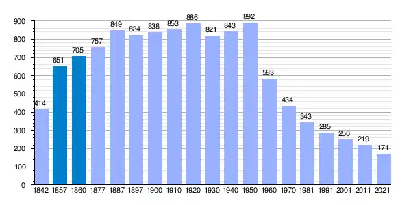 | Gráfica de evolución demográfica de Castrejón de Trabancos[1] entre 1842 y 2021 |