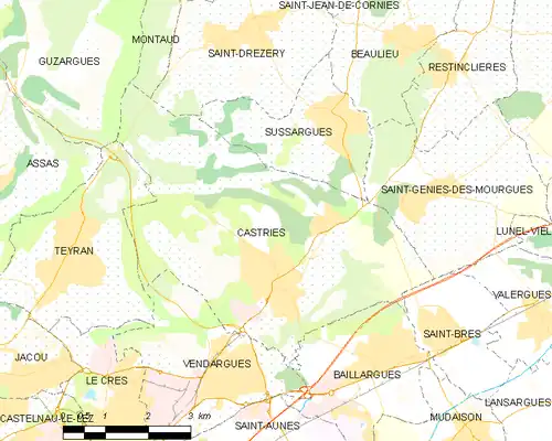 - Localización de Castries y comunas limítrofes en un mapa de Francia (enlace roto disponible en Internet Archive; véase el historial, la primera versión y la última).