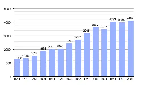 | Gráfica de evolución demográfica de Castrignano de' Greci entre 1861 y 2001 |