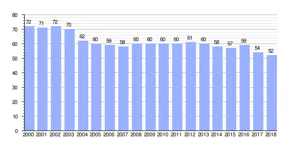 | Gráfica de evolución demográfica de Castrigo entre 2000 y 2018 |