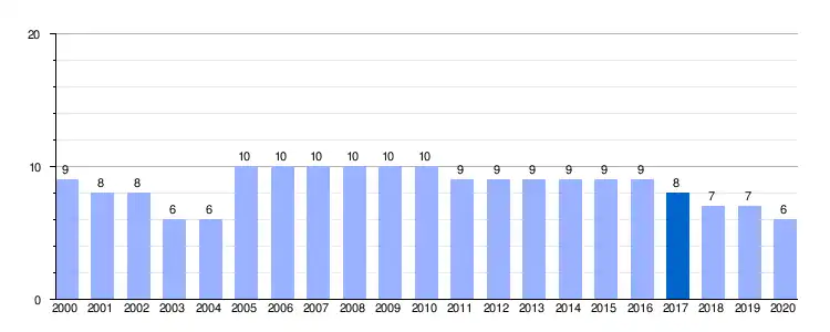| Gráfica de evolución demográfica de Castrillejo de la Olma entre 2000 y 2020 |
