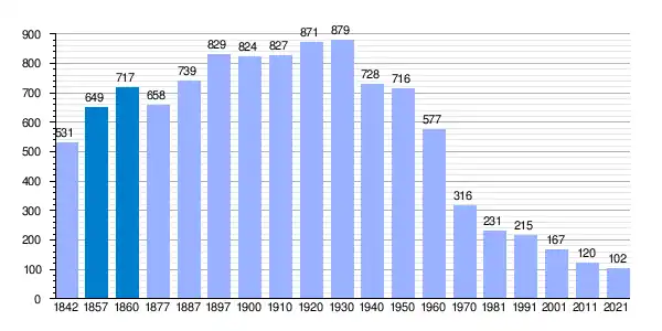 | Gráfica de evolución demográfica de Castrillo de Onielo[2] entre 1842 y 2021 |