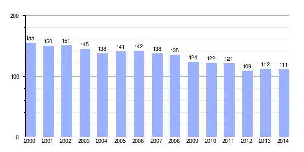 | Gráfica de evolución demográfica de Castrillo de San Pelayo[2] entre 2000 y 2014 |
