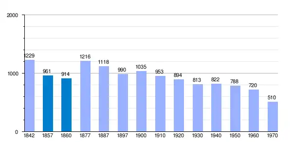 | Gráfica de evolución demográfica de Castrillo de los Polvazares[5] entre 1842 y 1970 |