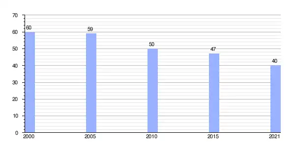 | Gráfica de evolución demográfica de Castro (parroquia) entre 2000 y 2021 |