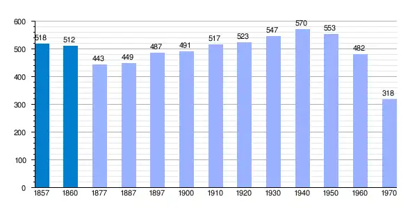 | Gráfica de evolución demográfica de Castrofuerte[3] entre 1857 y 1970 |