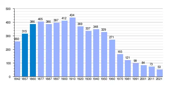 | Gráfica de evolución demográfica de Castromembibre[2] entre 1842 y 2021 |