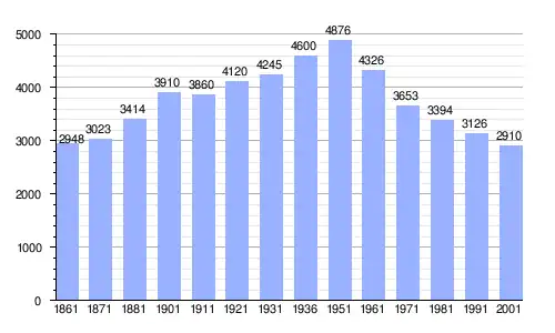 | Gráfica de evolución demográfica de Castroreale entre 1861 y 2001 |