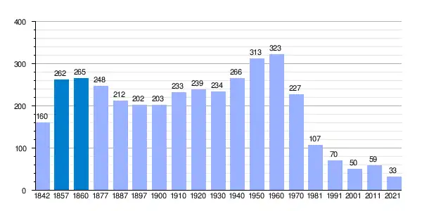 | Gráfica de evolución demográfica de Castroserna de Abajo[10] entre 1842 y 2021 |