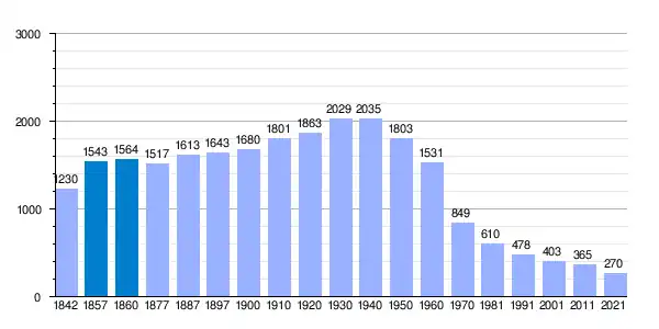 | Gráfica de evolución demográfica de Castroverde de Campos[14] entre 1842 y 2021 |