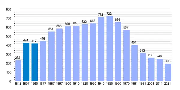 | Gráfica de evolución demográfica de Castroverde de Cerrato[3] entre 1842 y 2021 |