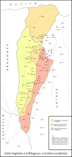 A su vez, los condes de Barcelona y Urgel sobre el 1056 conquistaron la ribera del Noguera Ribagorzana. Más tarde los condes de Urgel y la Orden del Temple conquistaron la Litera, estableciendo la frontera máxima del catalán en Aragón.[1]