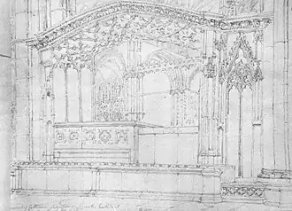 - ↑ Dibujo del año 1640 de las tumbas de Catalina Swynford y su hija Juana Beaufort en la catedral de Lincoln antes de que las tumbas fueran saqueadas en 1644 por los Roundheads