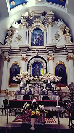 Altar de la Capilla de la Virgen de Guadalupe, con la imagen de "la Mamita de Guadalupe". (Foto actual, posterior a la restauración)